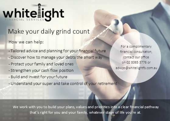 A financial plan is never a static strategy. Your life is ever changing so it’s important to consider all of the elements. We therefore review your assets, superannuation, real estate, business assets and structures, family situation, loans and of course your salary and sources of income. We actively work with your accountant, lawyer and mortgage broker to ensure that your Whitelight financial planning strategy will synergise with your overall financial framework.